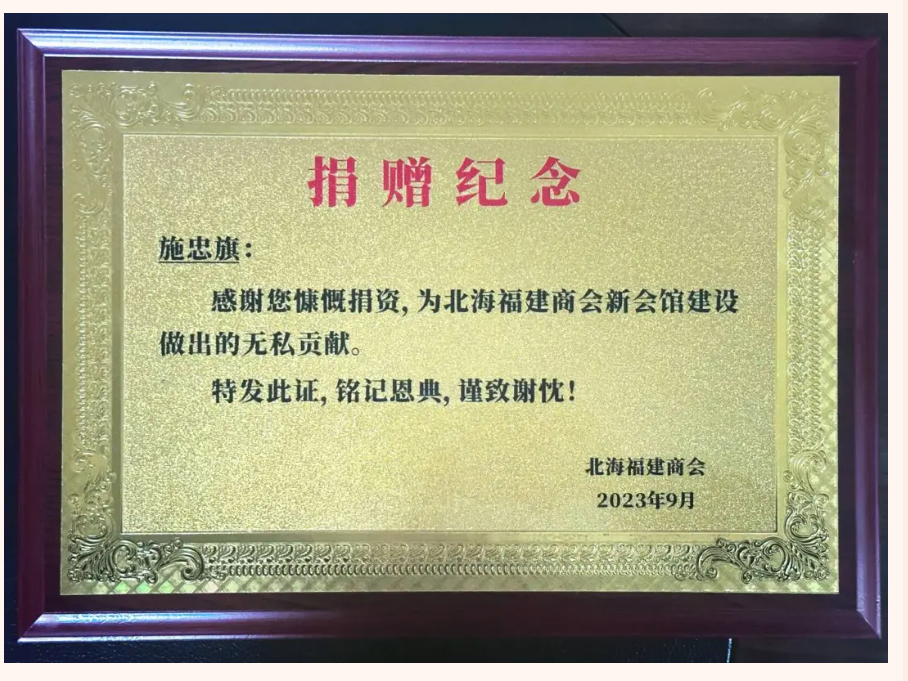 董事长施忠旗捐资北海福建商会 共筑闽商新家园发布日期:2024-03-27