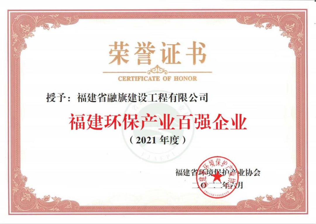 福建省融旗建设工程公司获评2021年度福建环保百强企业发布日期:2022-06-24