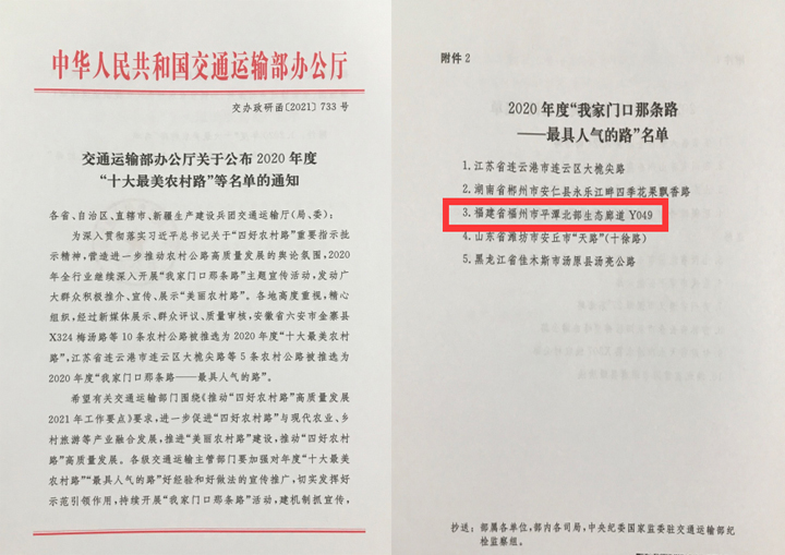 喜报 | 融旗集团平潭北部生态廊道(EPC)项目荣获交通运输部2020年度“我家门口那条路——最具人气的路”发布日期:2021-06-09