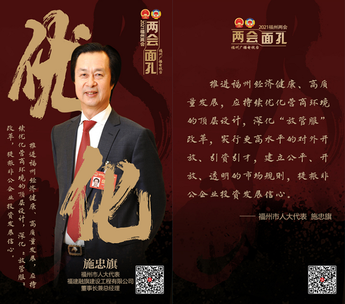 2021年1月6日至9日,福州市第十五届人民代表大会第五次会议在福建会堂举行。融旗集团董事长施忠旗作为市人大代表,全程出席大会和福清代表团的各项审议,履行代表职责,积极建言献策。