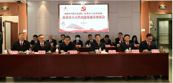 座谈会上,丁仰豪代院长和张时贵检察长分别解读本院2020年工作开展情况和2021年工作思路。与会代表充分肯定福州市法检“两院”所取得的工作成效。同时,围绕营造法治化营商环境、未成年保护检察工作、知识产权保护、加强基层法院审判工作监督等方面提出意见建议。