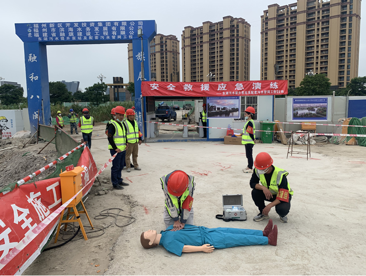 为进一步加强和规划安全生产应急管理工作,提升项目施工过程中的应急处置能力,2020年11月6日,由福州市滨海水务发展有限公司联合融旗集团在东湖污水提升泵站及配套污水管网工程项目部开展了安全救援应急演练,参加人数共计20余人。福州市滨海水务副总经理王祥承一行莅现场指导。