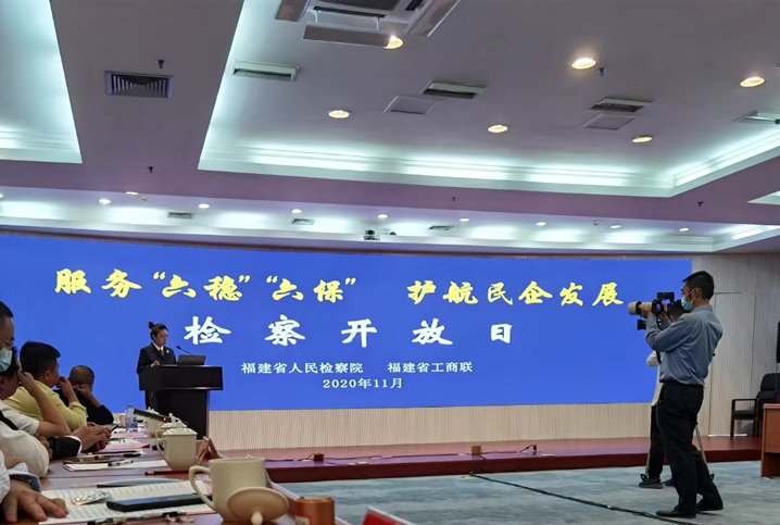2020年11月3日,福建省人民检察院、省工商联联合举办服务“‘六稳’‘六保’、护航民企发展”检察开放日活动。省政协副主席、省工商联主席王光远,省检察院党组书记、检察长霍敏等领导出席会议。施忠旗作为省政协委员、省工商联(总商会)副会长、优秀民营企业家代表应邀参会并发言。