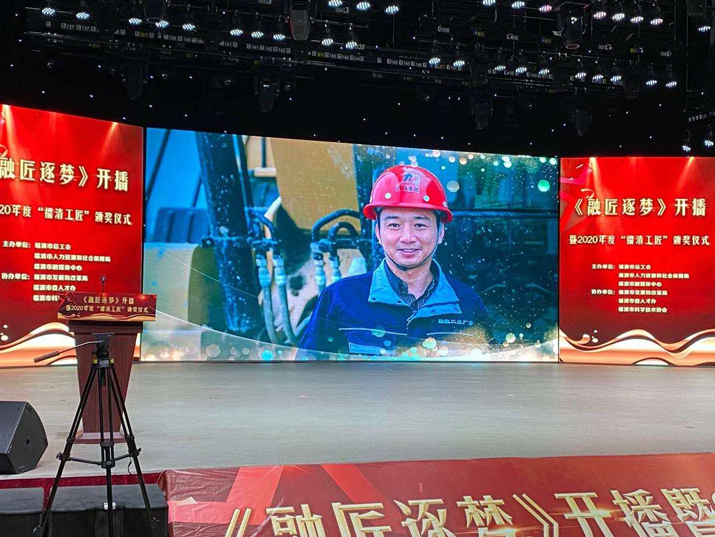 金秋十月硕果香,获奖喜讯频频传。2020年10月22日,由福清市总工会、市人社局、市融媒体中心主办,福清市发改局、市人才办、市科协协办的2020年度“福清工匠”颁奖仪式在福清市融媒体中心演播厅举行。福清市领导张新怿、林彤、刘必建、林传烜等出席活动。融旗集团挖掘机驾驶员魏成栋获得“2020年度十大福清工匠”。