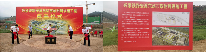 2020年9月28日上午,泉州市安溪县一批重点项目集中举行开(竣)工仪式,融旗集团承建的兴泉铁路安溪东站市政附属设施工程于当日开工。安溪县领导高向荣、吴毓舟、廖皆明、梁金梁、庄稼祥等出席开工仪式并为项目培土奠基。