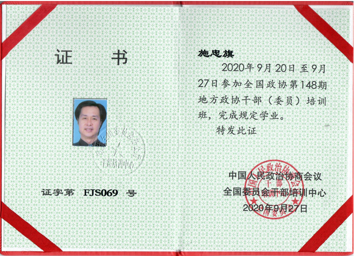 2020年9月20日-9月27日,全国政协第148期地方政协干部(委员)培训班在北戴河举办。融旗集团董事长施忠旗作为福建省第十二届政协委员参加培训。