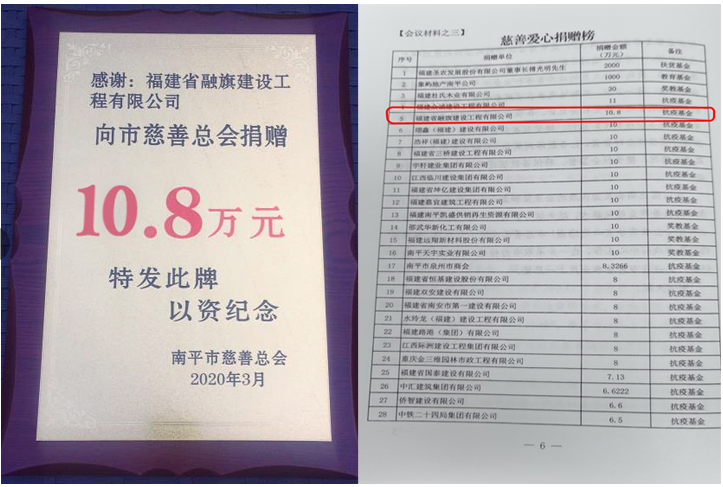 会上,南平市慈善总会对2019-2020年全市开展慈善工作进行总结,并举行隆重的捐赠仪式。融旗集团等捐赠单位接受了表彰。
