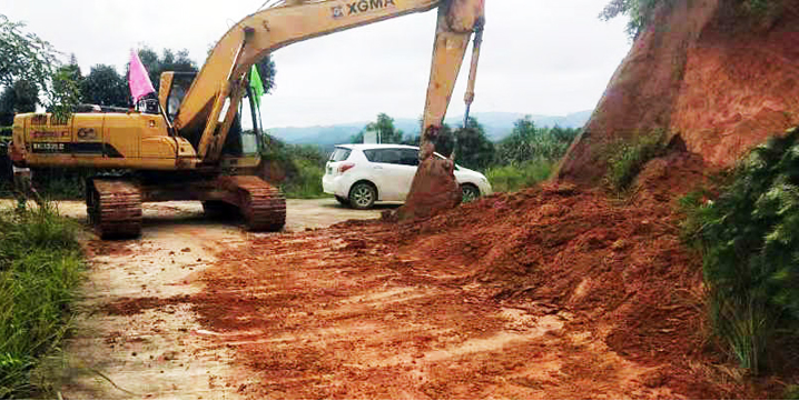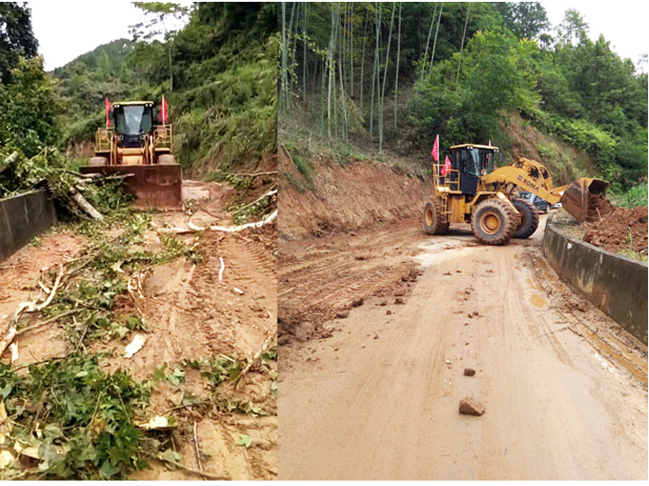 一方有难,八方支援。武夷山汛情牵动着融旗集团高层的心,迅即于2020年7月10日,组建了一支由党员、入党积极分子、骨干分子等15人参加的抢险救援先锋队,第一时间赶赴武夷山,与武夷山公路分局共同商讨抢险救援方案。根椐总体部署安排,融旗集团负责武夷山洋庄乡Y019段与洋庄乡Y016段的公路塌方抢险救援工作。该路段受持续强降雨的影响,公路沿线出现大面积山体滑坡,大量的塌方土及山体植被将沿线公路截段,造成道路交通全面中断。融旗集团调派的2台挖掘机、4辆运输车、1台洒水车第一时间部署到一线,争分夺秒开展抢险救灾工作,经过抢险救援先锋队全体人员一天一夜的奋战,该路段约5000方的滑坡塌方土及山体植被全部清除干净,恢复交通通行,确保了当地百姓的出行和救援物资的送达。