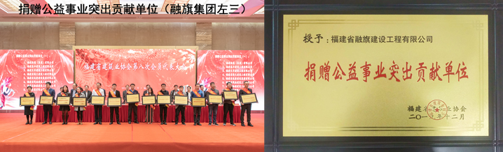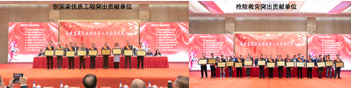 中国建筑业协会会长王铁宏、福建省住房和城乡建设厅厅长林瑞良在会上分别作重要讲话。会议分别对9家“创国家优质工程突出贡献单位”、19家“抢险救灾突出贡献单位”以及融旗集团在内的14家“捐赠公益事业突出贡献单位”进行表彰。