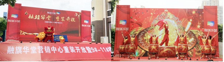 在融旗华堂新营销中心前广场,彩旗招展、人头攒动,伴随着热闹的锣鼓声,舞龙在广场中翩翩起舞,引来现场观众鼓掌喝彩。