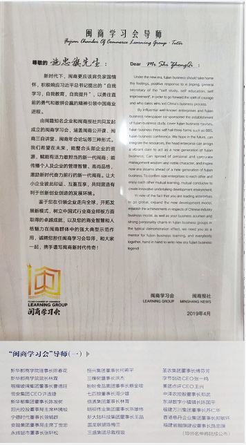 融旗集团董事长施忠旗参加“追梦新时代 奋进新征程”闽商大讲堂并荣获首批闽商学习会导师称号