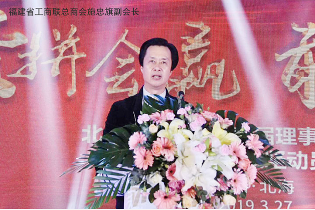 施忠旗副会长表示,北海福建商会班子建设好、团结教育好、服务发展好、自律规范好,是一个四好商会。多年来,商会为服务闽商在北海投资创业、鼓励和引导闽籍在北海有识之士、促进两地联谊合作与信息交流等方面作出积极的贡献。施忠旗副会长提出4点要求:1、商会要讲政治责任。商会组织是经过党和政府批准的社团组织,我们商会的班子成员要坚定理想信念。要不忘初心、牢记使命、听党话、坚定不移跟党走,提升自身的政治素质与履职能力,集中精力抢抓机遇、谋求发展。2、要履行好商会的职责。商会以“架设政企沟通桥梁,维护会员合法权益,引导闽商合法诚信经营,促进企业健康发展”为宗旨。要加强团结协作,促进全北海福建乡亲的大融合、大发展,为推进福建与广西北海两地的经济建设和社会发展发挥积极的作用。3、要肩扛社会责任,热心社会公益。习近平同志指出:“只有站在时代前沿,引领风气之先,精神文明建设才能发挥更大威力。”共同富裕是社会主义的本质特征和根本价值目标。要努力践行社会主义核心价值观,履行好社会责任和义务。要积极响应中央的脱贫攻坚战略,把积极参与社会扶贫济困,为建设社会主义和谐社会添力作为企业的历史责任,积极参与公益事业,为构建和谐社会尽心尽力,真诚奉献。4、要办好自己的企业,服务社会。今年是中华人民共和国成立70周年。民营企业发展离不开国家发展的战略大局,国家发展的战略大局也需要民营企业的支持。
