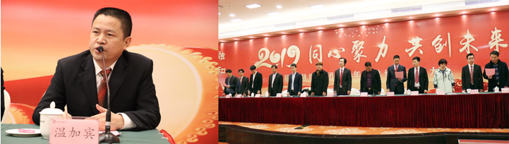 瑞犬辞旧岁,金猪送福来。《2019同心聚力、共创未来》为主题的福建融旗集团2018年度总结表彰大会暨迎春联欢晚会于2019年2月14日在福州西湖宾馆隆重举行。融旗集团高层管理人员、在榕职工及部分驻外单位代表齐聚一堂,总结过去、谋划未来。中共福建省委党校原常务副校长、福建省委原委员、福建省人大原常委、终身享受国务院特殊津贴的经济学专家林述舜教授、我省知名水务专家陈仁贵等应邀出席大会。
