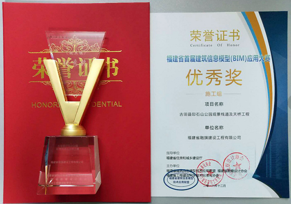 在本届大赛中,融旗集团“厦门杏林污水处理厂三期工程建筑信息模型”、“宁德古田县印石山公园观景栈道及天桥工程建筑信息模型”分别荣获综合组三等奖及施工组优秀奖。