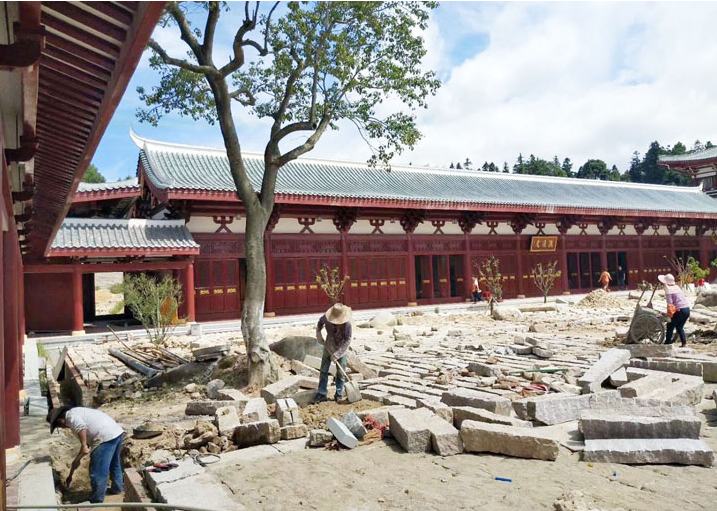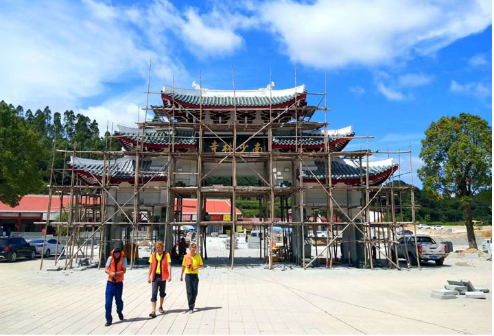 林宝金书记一行深入施工现场,亲切慰问国庆节期间坚守岗位的一线工人,详细了解莆田南少林寺环境提升工程各项工作进展情况,实地查看河道整改、地砖铺设、绿化施工等。
