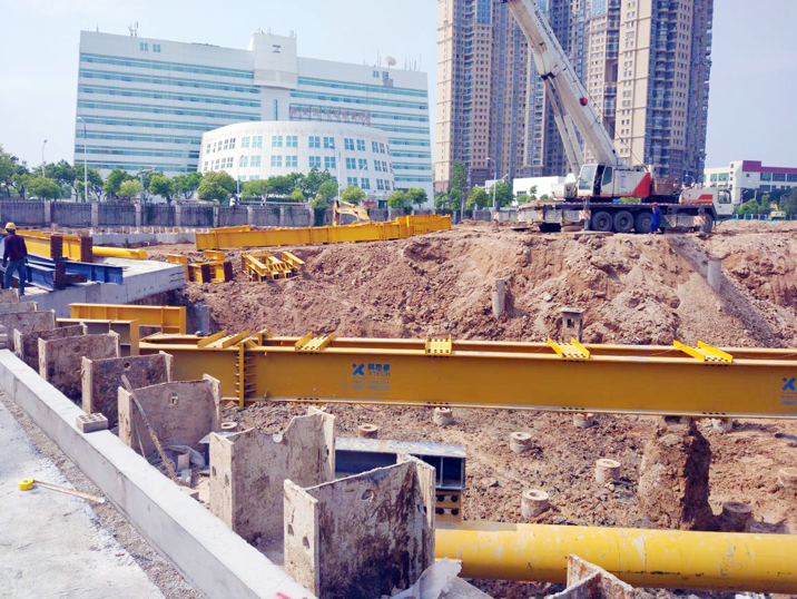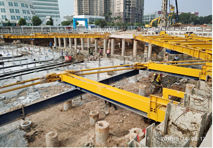 3、2018年4月13日,开始2号基坑支护张弦梁支撑安装及土方开挖