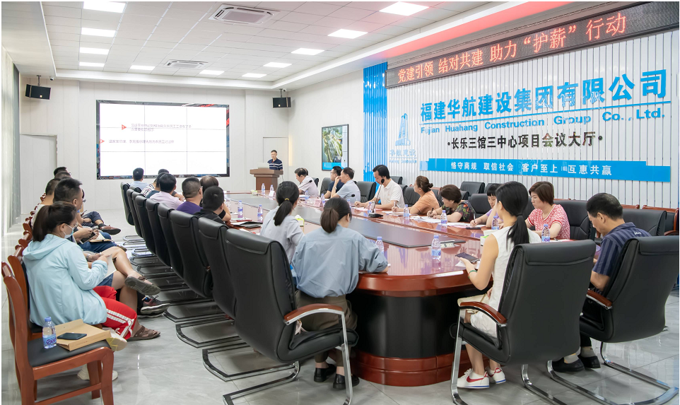 8月25日上午,省住建厅建筑业处党支部、市建协党支部、华航公司党支部、“三馆三中心”项目部临时党支部在长乐“三馆三中心”项目部开展“党建引领 结对共建 助力‘护薪’行动”主题党日活动。省住建厅建筑业处党支部肖建禄(纪检干部、二级调研员)、福州市建筑业协会党支部书记兼会长、融旗集团董事长施忠旗,市建协秘书长王斌,融旗集团党支部陈圣明、陈琳琳,东道主华航公司党支部书记、董事长张华官及华航集团各支部党员代表、项目部一线建设者共30多人参加活动。