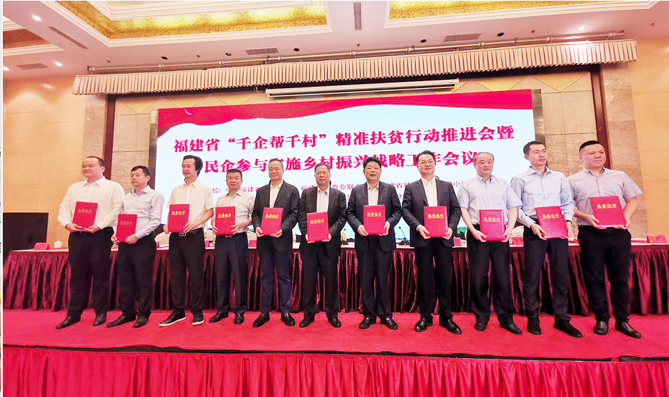 8月26日,福建省“千企帮千村”行动总结暨“万企兴万村”行动启动大会在福州召开。省委常委、统战部部长庄稼汉出席并讲话,省政协副主席、省工商联主席王光远通报“千企帮千村”行动情况。省委统战部副部长、省工商联党组书记李家荣主持会议,省农村农业厅党组书记、厅长黄华康等领导,省工商联(总商会)副会长、融旗集团董事长施忠旗等出席会议。