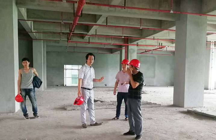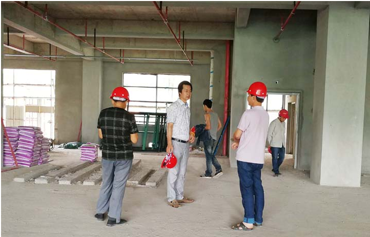 施忠旗董事长在检查过程中,首先了解进度情况,听取项目负责人对工程安全、质量和现场文明施工情况的汇报,并对工程质量、安全等进行检查。施忠旗董事长对现场室内砌体、粉刷情况、1至2层噴淋系統及铝合金窗、幕墙胶品牌等方面查看后,在工地现场反复强调一定要把安全工作放在首位,杜绝任何形式的违章作业,做好安全保护措施,确保安全文明施工。同时要求质量安全管理人员加大督查力度,严把施工质量关。