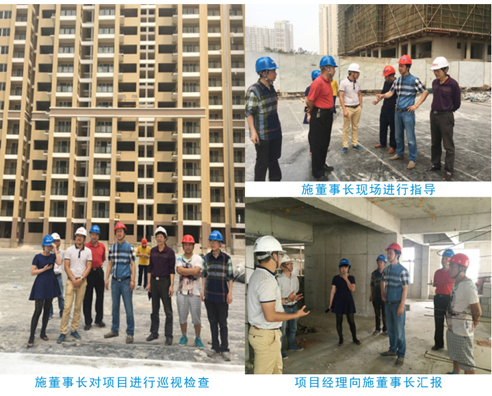 施忠旗董事长肯定了目前现场施工的进度,并强调,项目部一定要下功夫协调好各种关系,在保证施工质量、施工安全的前提下,制定详细施工计划,责任落实到人,务必在合同工期内保质保量完成工程任务。