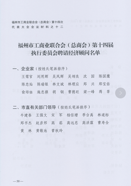 会议通过了《福州市工商业联合会(总商会)第十三届执委会工作报告》和相关决议,选举产生了新一届执委会,雷成财当选为新一届工商联主席、总商会会长。融旗集团施浩副总经理当选为新一届工商联副会长,施忠旗董事长被聘请为工商联经济顾问。大会还聘请部分十三届市工商联(总商会)兼职副主席(副会长)以及市直有关部门领导担任第十四届市工商联经济顾问。