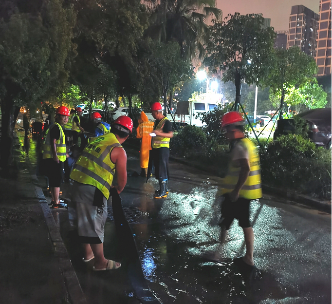 卢碧”台风暴雨来临前夕,融旗集团一线党员干部高度重视,迅速集结迎战,对安全隐患点进行全面的排查,对低洼地带人员和财产做好应对台风暴雨侵袭的转移准备,对涉及排洪管网及河道淤堵的杂物进行清除,防止暴雨堵塞。