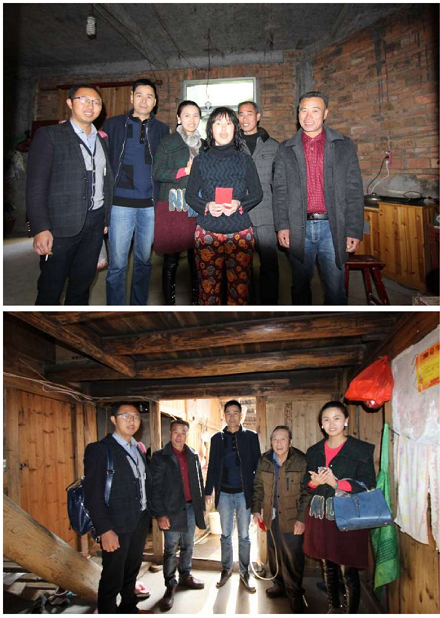 在下岐村党支部黄景铃书记,村政府徐金悌副主任的陪同下,集团高层管理人员详细查看了下岐村的村貌及道路交通建设情况。随后,以拉家常的方式,挨家挨户走访,每到一户都详细了解帮扶对象的住房情况,近期生活情况,经济收入情况和年货的置办情况,还亲手将1000元的节日慰问金送至贫困户手中,并叮嘱年长者保重身体,鼓励村民们要坚定信心,积极配合村委会的工作,通过自身的努力,踏实稳步去解决生活中的困难,提出改变家庭生活和增加收入的办法,争取早日脱贫致富。