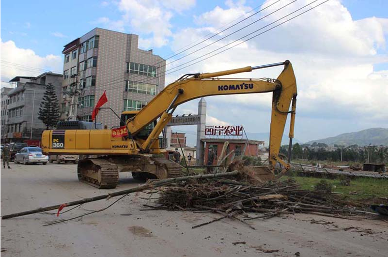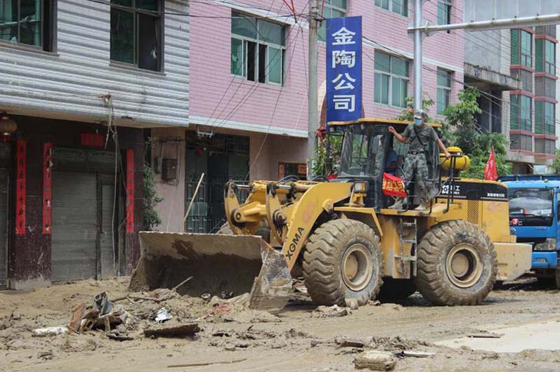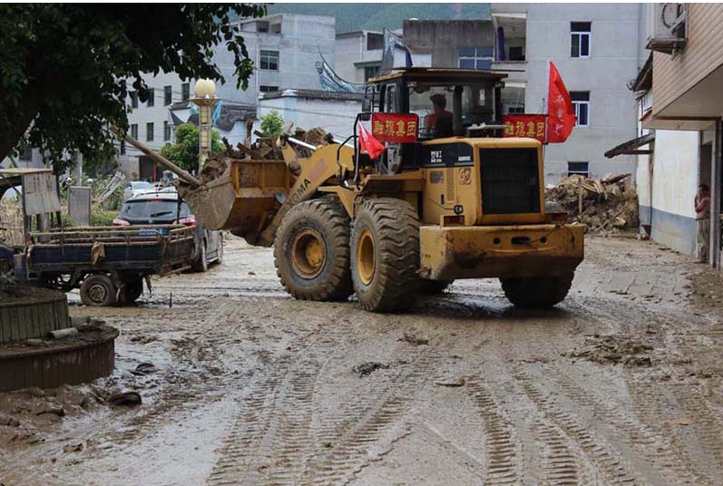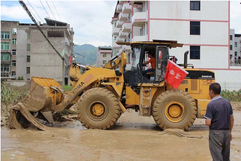 灾情牵动着社会各界的心。洪水无情,融旗有情!得知此次灾情后,融旗集团施忠旗董事长亲自部署,全力以赴支援地方政府抗洪救灾,并成立灾后抢修工作小组奔赴前线支援。抢修小组由集团温加宾副总经理指挥,工程部林加宝经理,项目骨干及机械能手组成。集团紧急组织调派临时调度车辆六辆,铲车五台,挖机五台,连夜前往重灾区闽清坂东镇。
