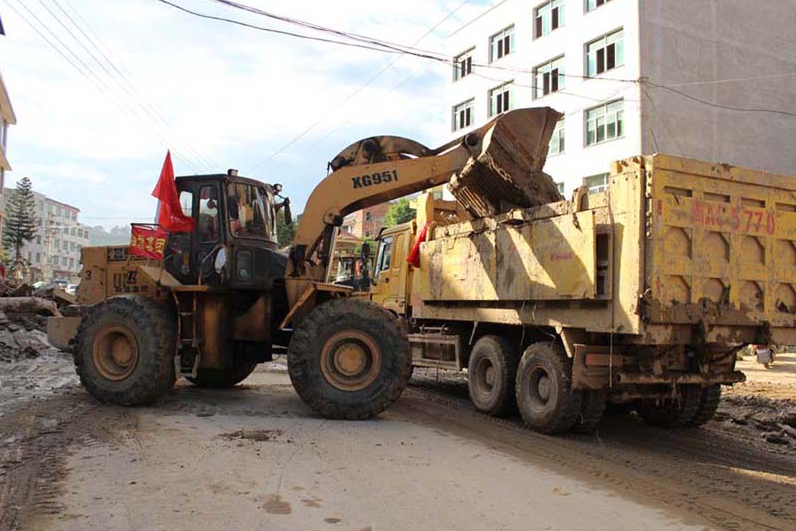 抢修期间,抢修小组的同事们认真投入,统一行动。机械车辆听从地方政府调度,协助配合抢险部队,有条不紊地疏通抢修道路,清理道路垃圾;运输车辆做好垃圾中转运输,协助受灾村民修理危房,转运财产等。通宵紧张的工作频率,抢修小组的同事们只能简单就餐,高度保持工作状态,但大家都未有丝毫的怨言。
