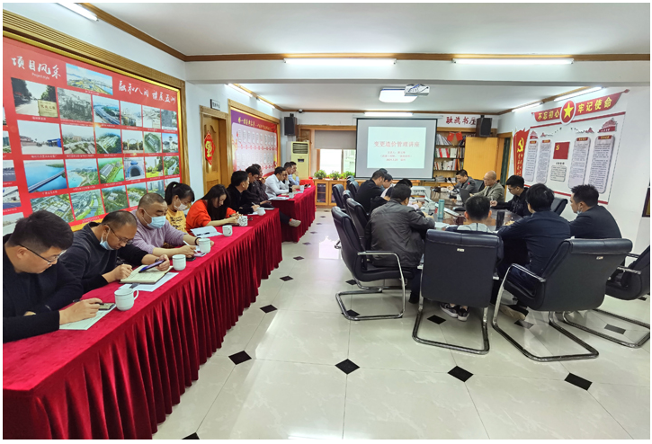 在授课过程中,唐元锋老师还列举了几个项目变更的事例辅助说明,加深了全体人员对工程变更程序和细节的理解。会上,大家还就项目变更中遇到的一些实际问题进行了交流讨论,提出解决方法,达到了良好的学习效果。
