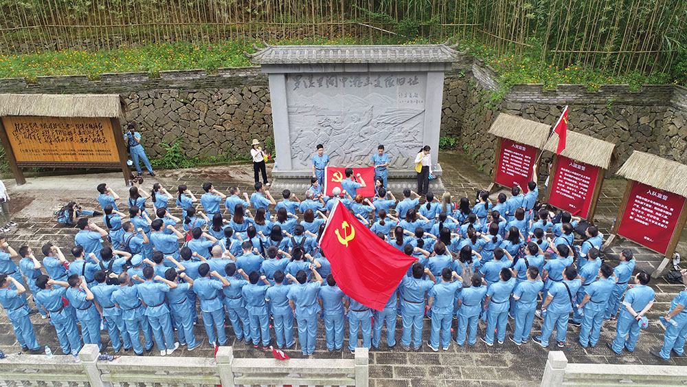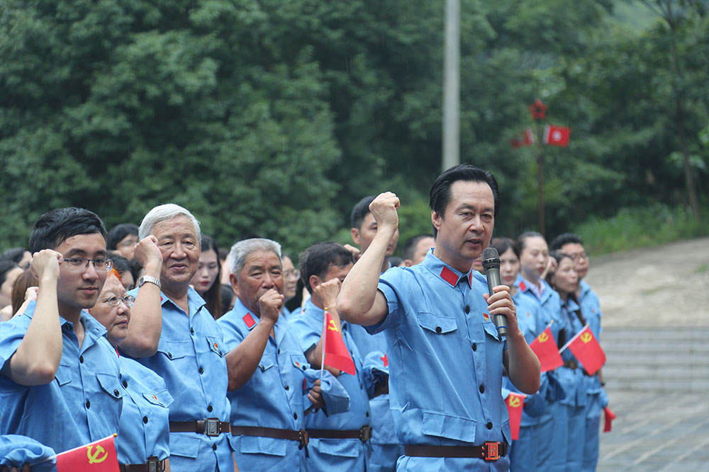 在庄严神圣的罗汉里革命纪念碑前,融旗集团的党员、中高层管理人员身着红军军装,神情肃穆,缓缓举起握紧的右手,重温入党誓词:我志愿加入中国共产党,拥护党的纲领,遵守党的章程,履行党员义务,执行党的决定......表达了对革命先烈的深情缅怀和继承先烈遗志、永远跟党走的坚定信念。在施忠旗董事长领誓下,整齐划一地入党誓词令人血脉喷张,深深感染了在场所有融旗人,并激励着融旗人踏着革命先辈的足迹奋勇前进。