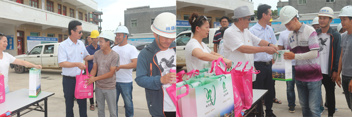 下午,福州市建筑业协会党支部书记、融旗集团董事长施忠旗带领全体党员来到平潭北部生态廊道项目部。天气炎热,他始终牵挂着奋战在一线的员工们,与一线施工人员亲切交谈,详细询问工作推进情况以及遇到的问题、困难,给大家送去了花茶、水杯、藿香正气水等夏日防暑降温慰问品,也送去了党支部暖暖的关爱。