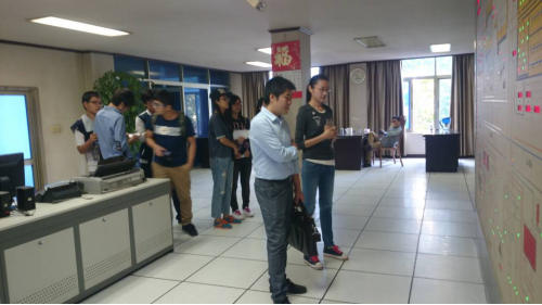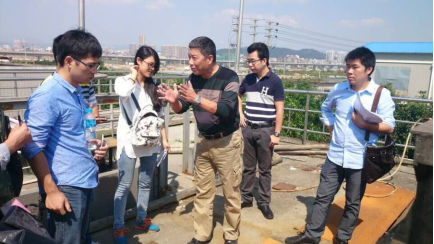 在粗格栅及进水泵房,融元污水厂厂长向大家介绍了污水厂的厂况,工艺及曝气形式。随后又带领大家先后参观了曝气沉砂池、一期A2/O反应池、中控室及化验室,实地了解排污系统及土坝结构等相关知识。