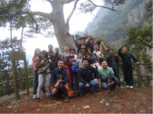 当日阴霾细雨,天气不佳,但员工们登山的热情不减,情绪高昂,勇攀高峰。全程历时两个半小时,大家以饱满的热情、高昂的斗志、顽强的毅力全部到达峰顶,一览山顶美景。